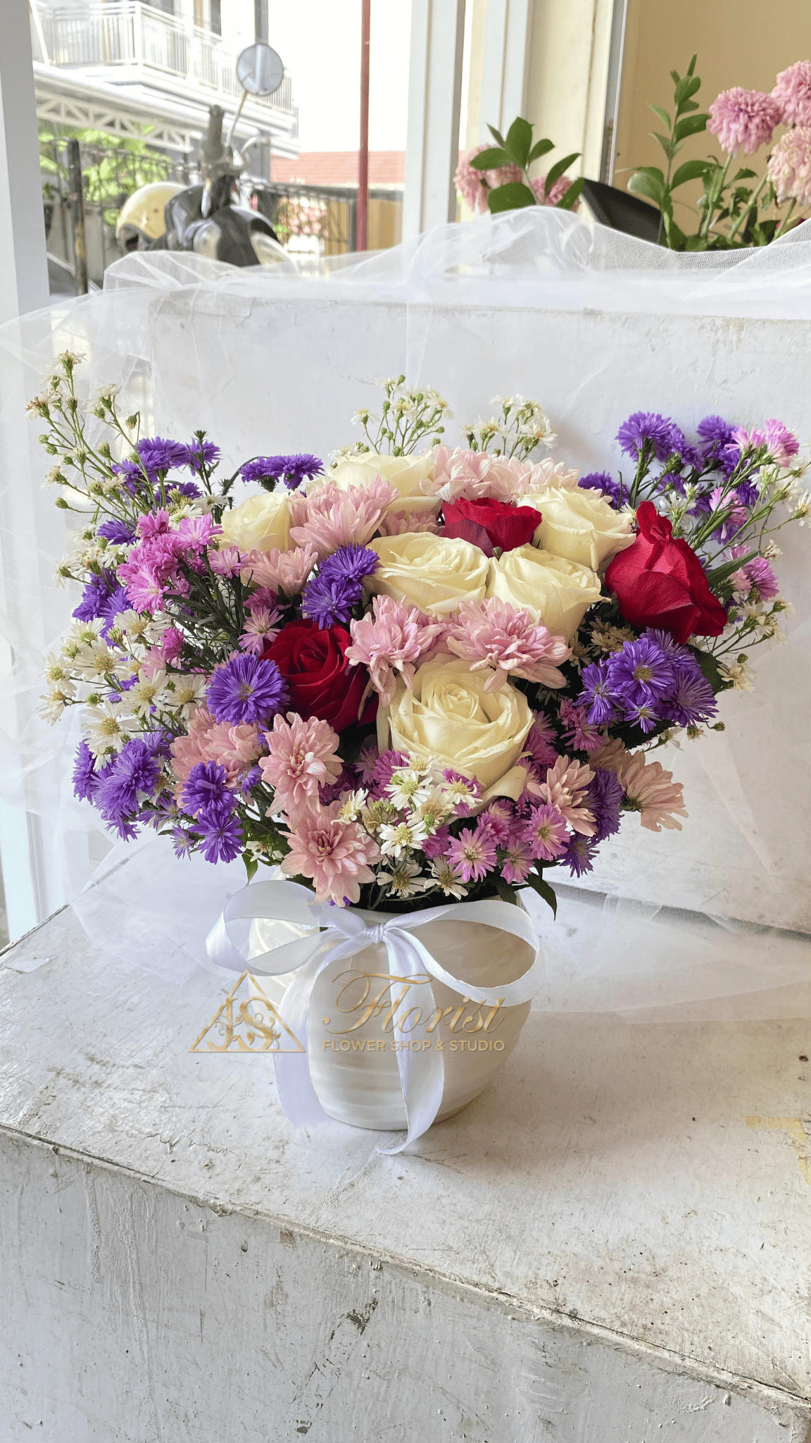 Mau bikin suasana di rumah atau kantor makin hidup dan kece? Flower Vase ini jawabannya! Rangkaian bunga segar disusun cantik dalam vas keramik eksklusif yang siap mempercantik meja, rak, atau sudut favoritmu 🌸🏑